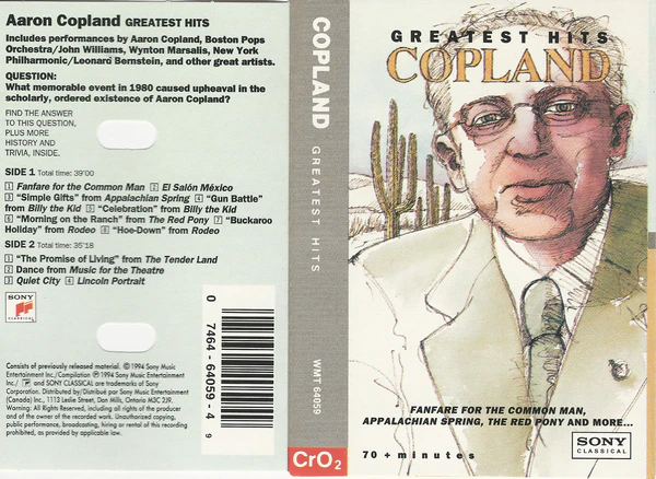 1. Fanfare for the Common Man - Aaron Copland, London Symphony Orchestra 2. Sal≤n MΘxico - Aaron Copland, New Philharmonia Orchestra 3. Appalachian Spring/Simple Gifts [From Appalachian Spring] - Boston Pops Orchestra, John Williams 4. Billy the Kid, Suite/Gun Battle [Billy the Kid: Orchestral Suite/Excerp - Aaron Copland 5. Celebration After Billy's Capture (Billy the Kid: Orchestral Suite/Ex) - Aaron Copland, London Symphony Orchestra6. Rodeo (Excerpts)/Buckaroo Holiday [Rodeo: Excerpts] - Aaron Copland 7. Rodeo (Excerpts)/Hoe-Down [Rodeo: Excerpts] - Leonard Bernstein, New York Philharmonic 8. Promise of Living from the Tender Land - Tanglewood Festival Chorus, John Williams 9. Dance from Music for the Theatre - Leonard Bernstein, New York Philharmonic 10. Quiet City - Eastman Wind Ensemble, Donald Hunsberger, , Wynton Marsalis 11. Morning on the Ranch from the Red Pony - AndrΘ Previn, Saint Louis Symphony Orchestra 12. Lincoln Portrait - Eugene Ormandy, Philadelphia Orchestra, Adlai Stevenson