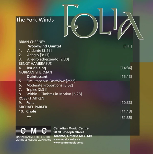 York Winds : Douglas Stewart, flute ; Lawrence Cherney, oboe ; Paul Grice, clarinet ; Harcus Hennigar, horn ; Gerald Robinson, bassoon; Cynthia Steljes, oboe (in Parker only)