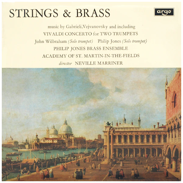 A remarkable Argo release from 1969 with works of Gabrieli, Vivaldi and Vejvanovsky. Philip Jones and John Wilbraham share solo duties with Andrew Davis at the harpsichord. Extraordinary!