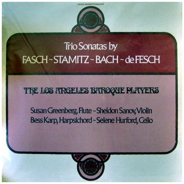 The Los Angeles Baroque Players, Susan Greeberg (flute), Sheldn Sanov (violin) Bess Karp (harpsichord), Slene Hurford (cello)