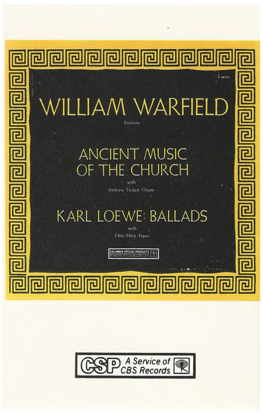 William Warfield: Ancient Music of the Church; Karl Loewe Ballads [Tape]